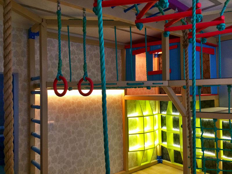 Детские площадки для квартиры могут быть похожи на лаконичный гимнастический зал или вольер для мартышек… Если надо, то потолок будет небом, а паркет газоном. Воображайте дорогие взрослые, оглядывая пока еще пустую комнату, предназначенную для детской. Полистайте журналы, загляните в интернет, посетите зоопарк… Потом звоните нам. Уж мы то развернемся на славу.